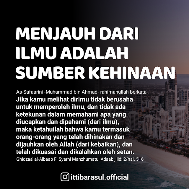 “Jika kamu melihat dirimu tidak berusaha untuk memperoleh ilmu, dan tidak ada ketekunan dalam memahami apa yang diucapkan dan dipahami (dari ilmu), maka ketahuilah bahwa kamu termasuk orang-orang yang telah dihinakan dan dijauhkan oleh Allah (dari kebaikan), dan telah dikuasai dan dikalahkan oleh setan.” (Ghidzaa' al-Albaab Fi Syarhi Manzhumatul Adaab jilid: 2/hal. 516)